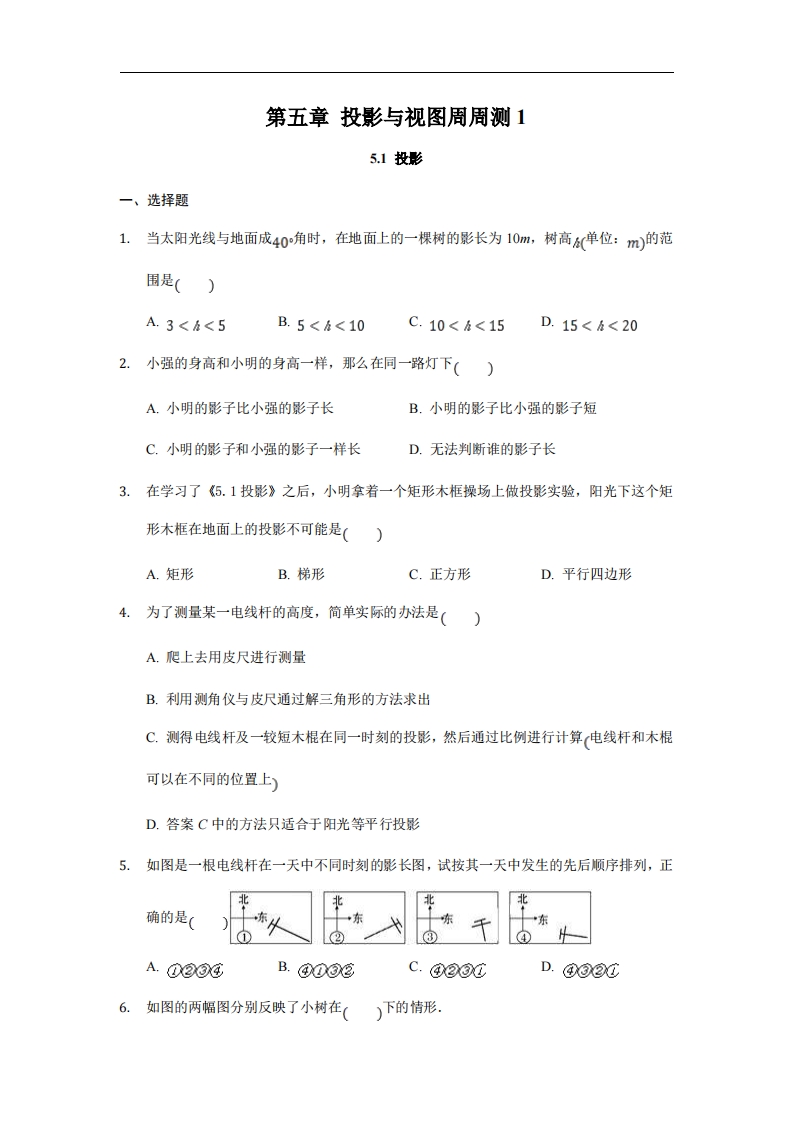 九年级(上)数学 第五章 投影与视图周周测1(5