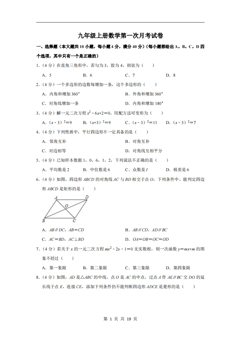 首页九年级数学上册九年级(上)数学 第一次月考试卷 5(苏科版)