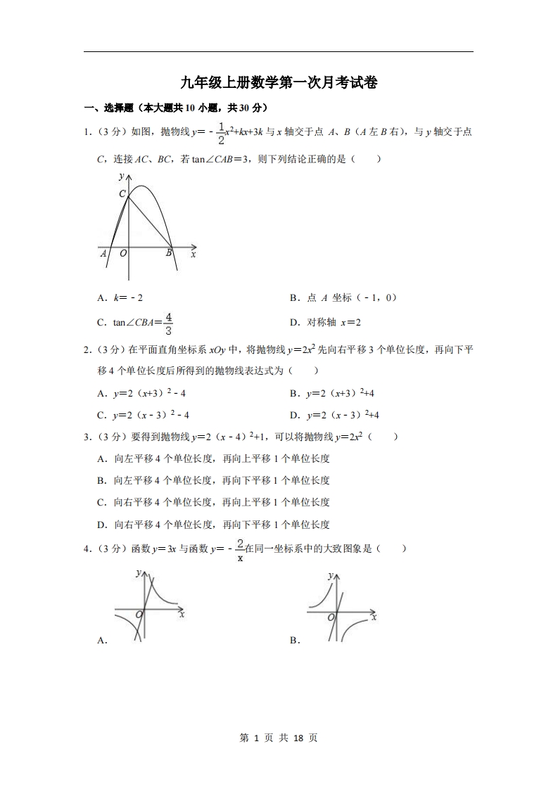 首页九年级数学上册九年级(上)数学 第一次月考试卷4(苏科版)