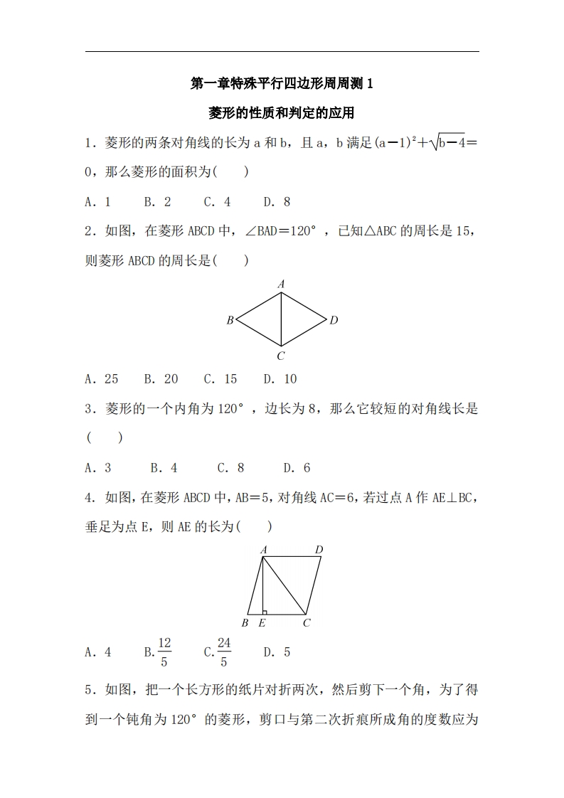 九年级(上)数学 第一章 特殊平行四边形周周测1(1