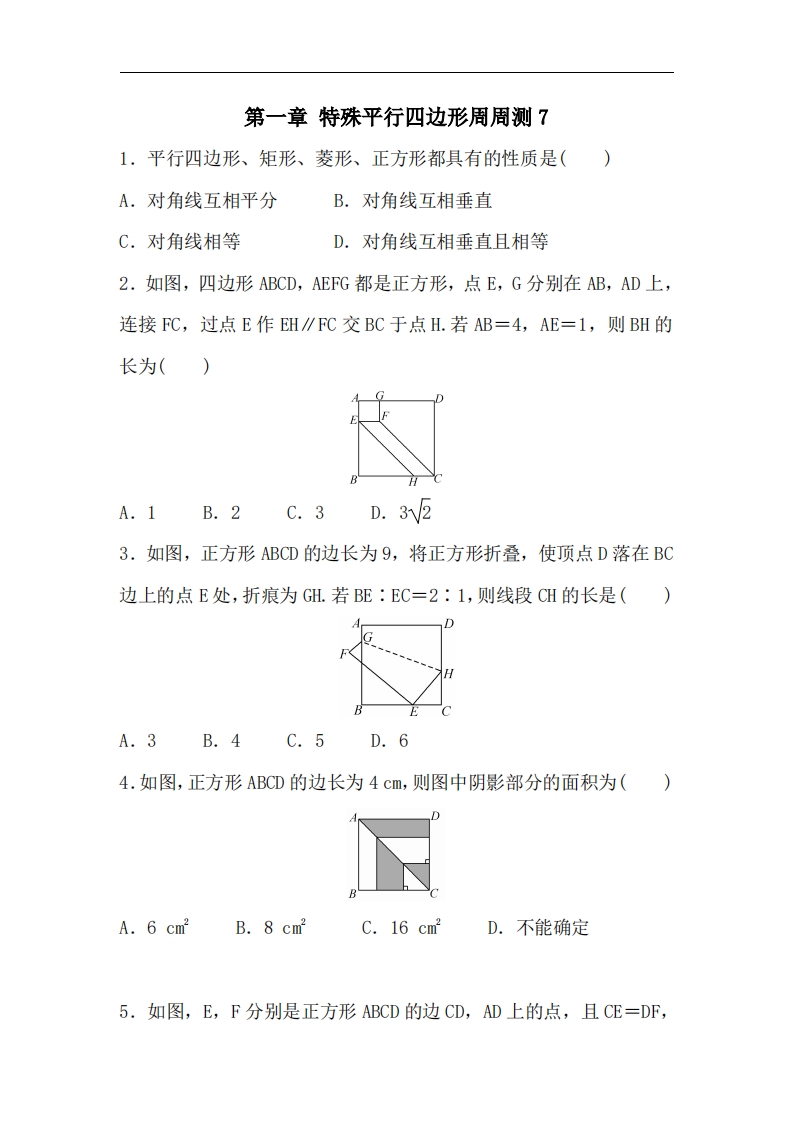九年级(上)数学 第一章 特殊平行四边形周周测7(1