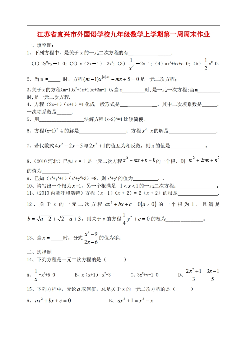 首页九年级数学上册九年级(上)数学 第一周周末作业 (苏科版)