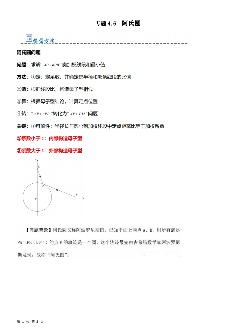 首页九年级数学上册九年级(上)数学 阿氏圆(隐圆压轴三) 题型练习(人教版)