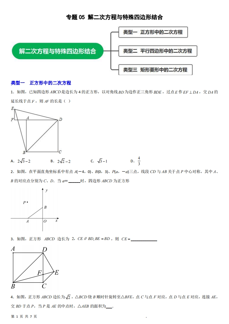 九年级(上)数学 解二次方程与特殊四边形结合(人教版)
