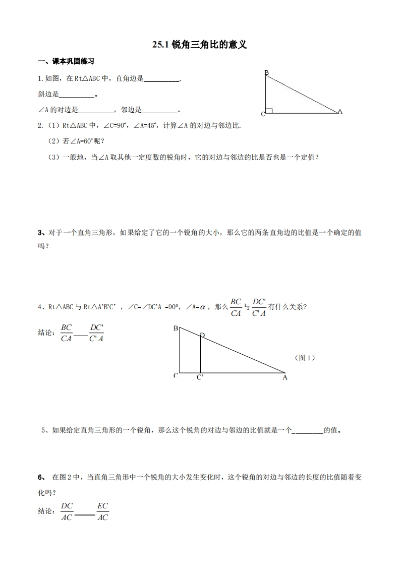 首页九年级数学上册九年级(上)数学 锐角三角比的意义同步练习(沪教版)