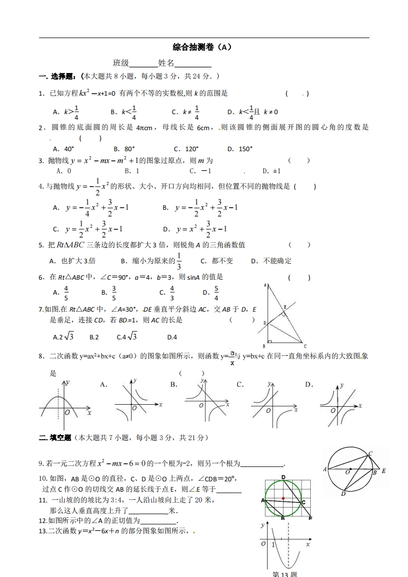 九年级(上)数学 综合抽测卷(苏科版)