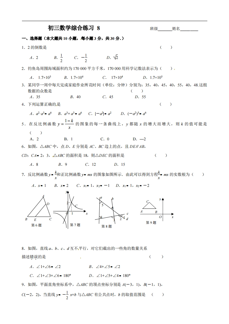 首页九年级数学上册九年级(上)数学 综合试卷9(苏科版)