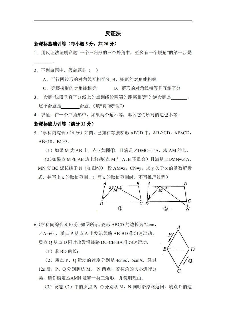九年级(上)数学《反证法》同步练习3(青岛版)