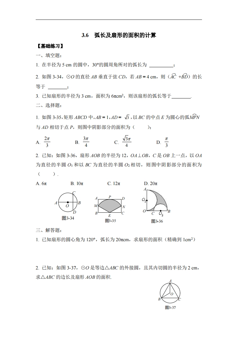 九年级(上)数学《弧长及扇形的面积的计算》同步练习1(青岛版)