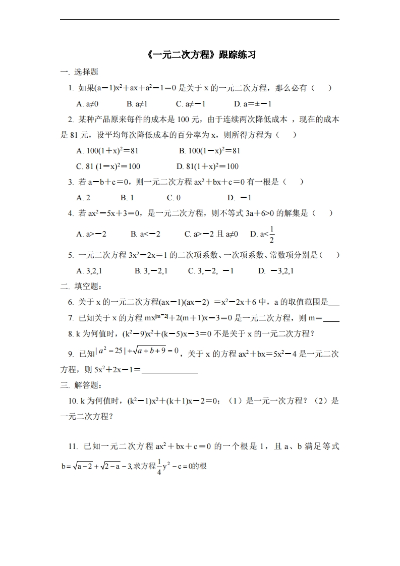 九年级(上)数学《一元二次方程》跟踪练习(青岛版)