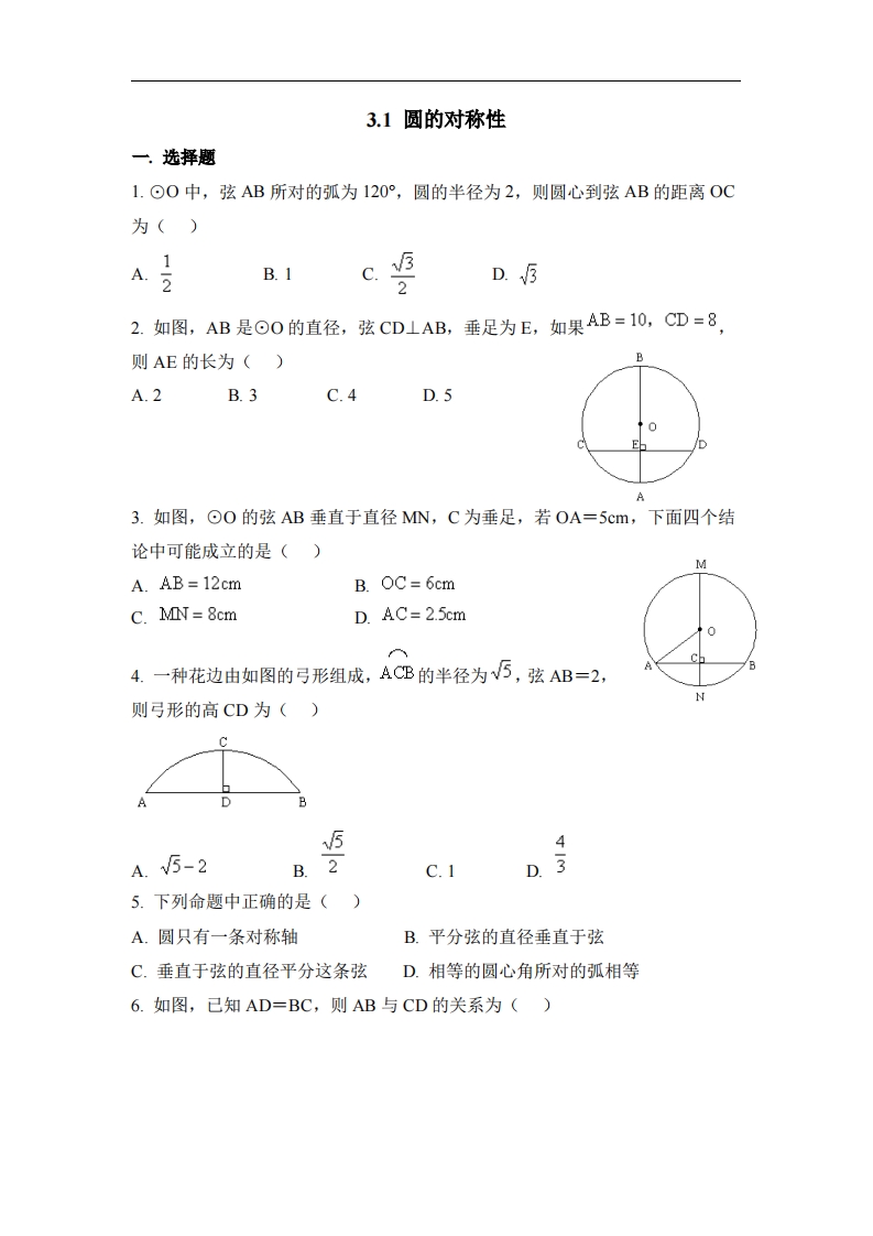 九年级(上)数学《圆的对称性》同步练习1(青岛版)