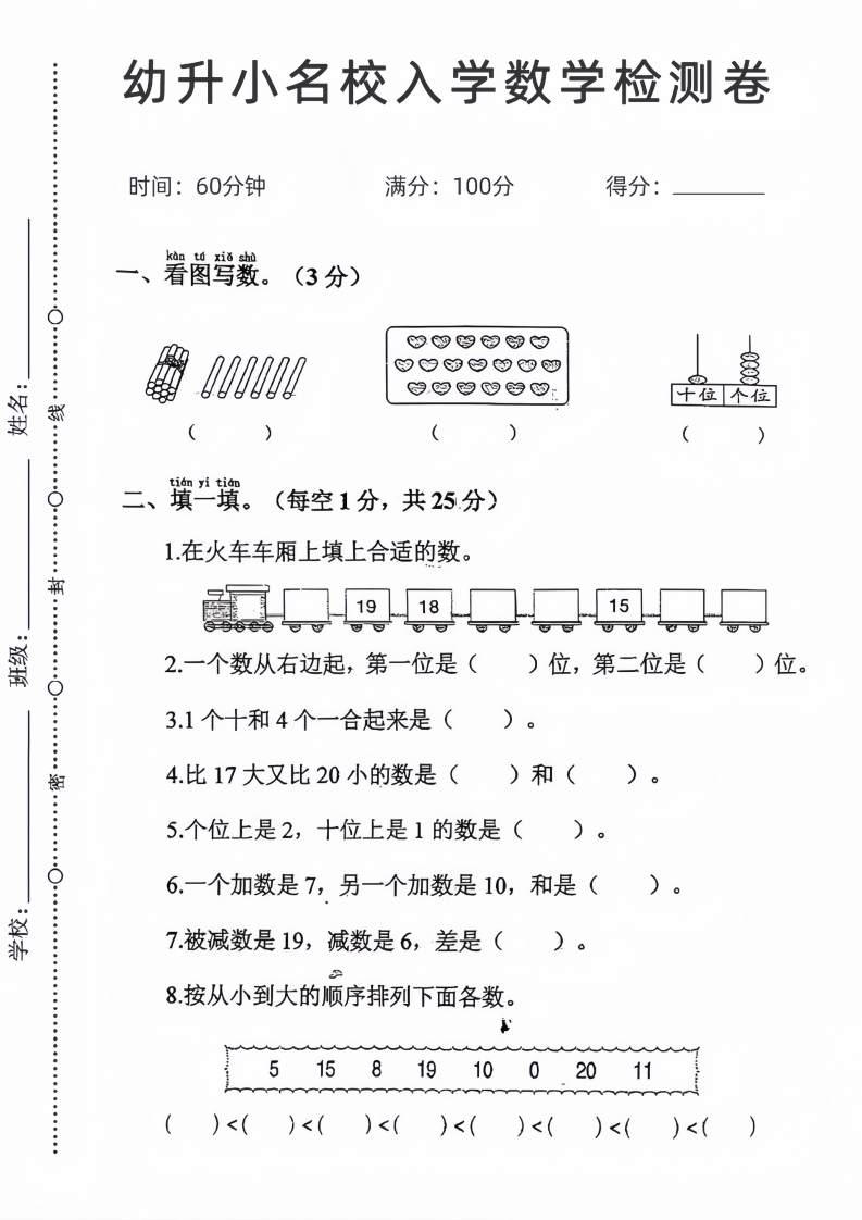 首页幼小衔接数学试卷幼升小名校入学数学检测卷_04