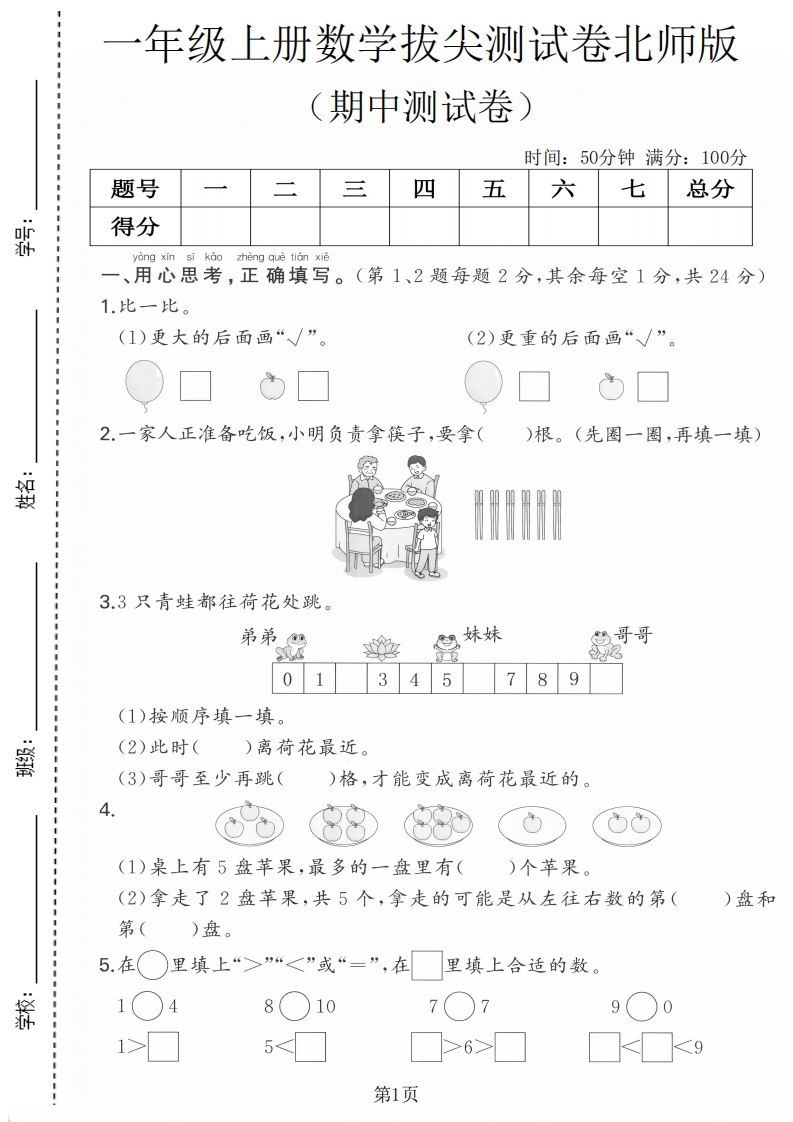 一年级(上)数学期中测试卷《北师版》