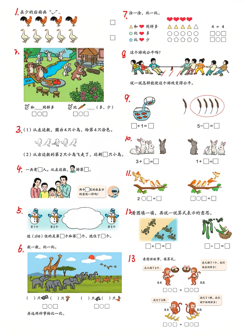 首页一年级数学上册一年级(上)数学课本上的题