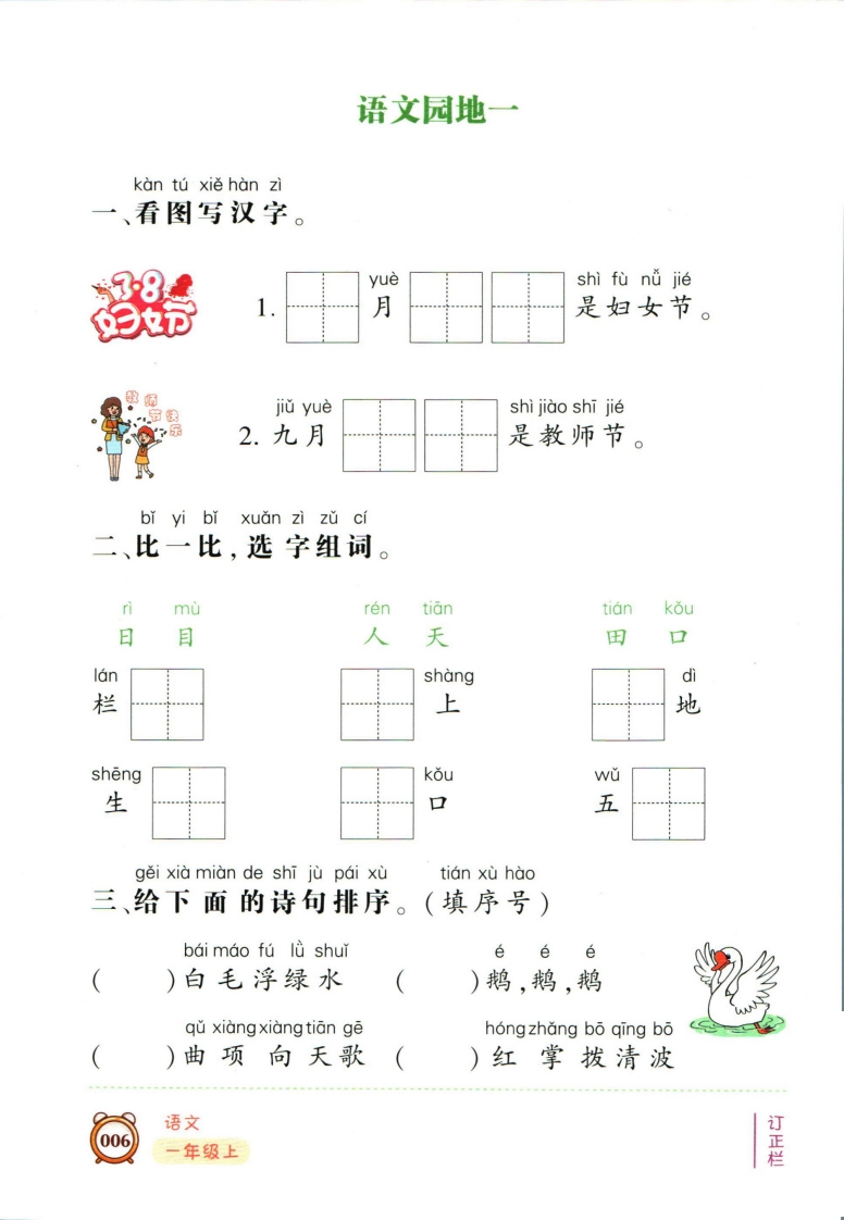 首页一年级语文上册《语文园地+单元复习》(1年级上)