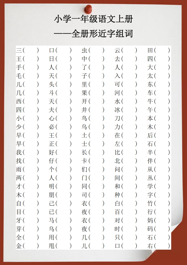 首页一年级语文上册【2025秋新版】小学一年级语文上册全册形近字组词