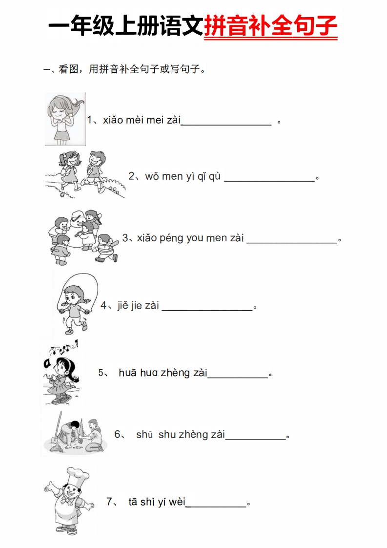 首页一年级语文上册【看图用拼音补全句子】一下语文_1