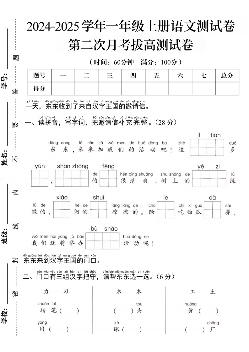 首页一年级语文上册【先锋教辅】一年级上册语文第二次月考