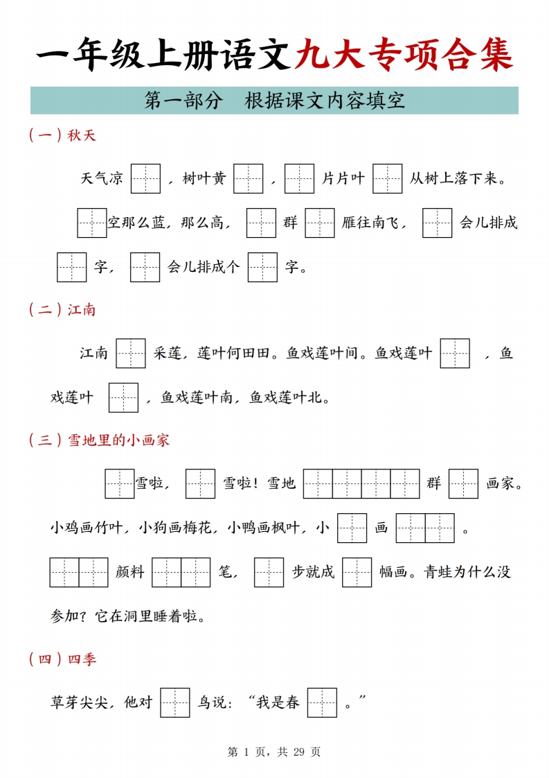 25年一年级上册语文九大专项合集(29页)