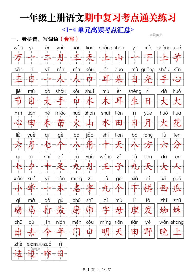 首页一年级语文上册25新一年级上册语文期中复习考点通关练习