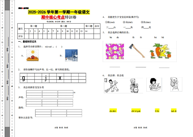 首页一年级语文上册2025年一年级语文期中核心考点特训卷