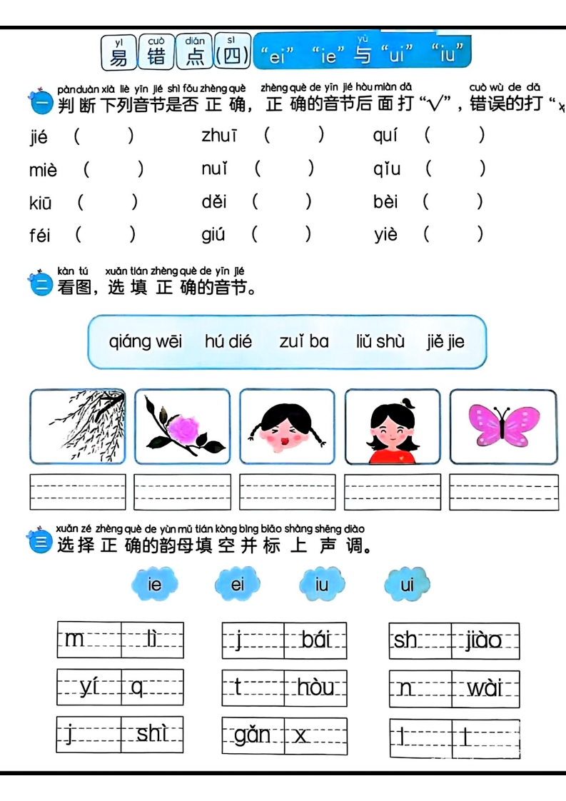 首页一年级语文上册ei ie iu ui 练习