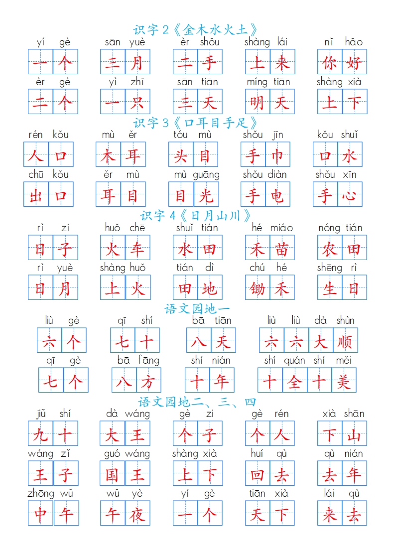 首页一年级语文上册一上语文【新生字课课练(答案)】