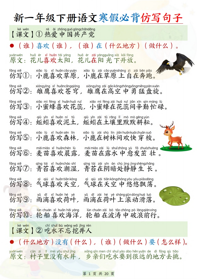 首页一年级语文下册新一下语文寒假必背仿写句子(20页)