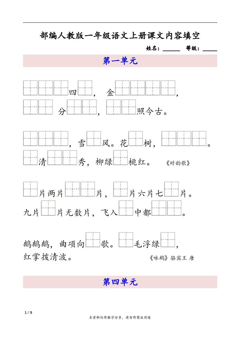 首页一年级语文上册一上语文按课文内容填空