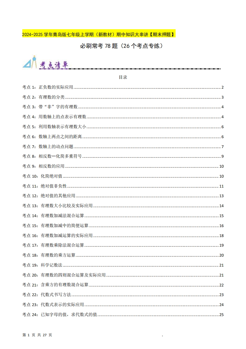 首页七年级数学上册七年级(上)数学 必刷常考题26个考点专练