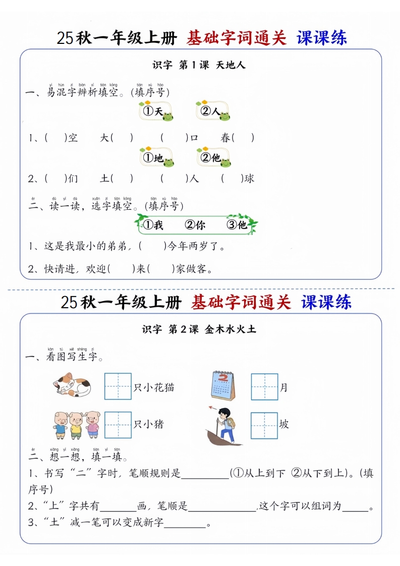 首页一年级语文上册一上语文基础字词通关课课练