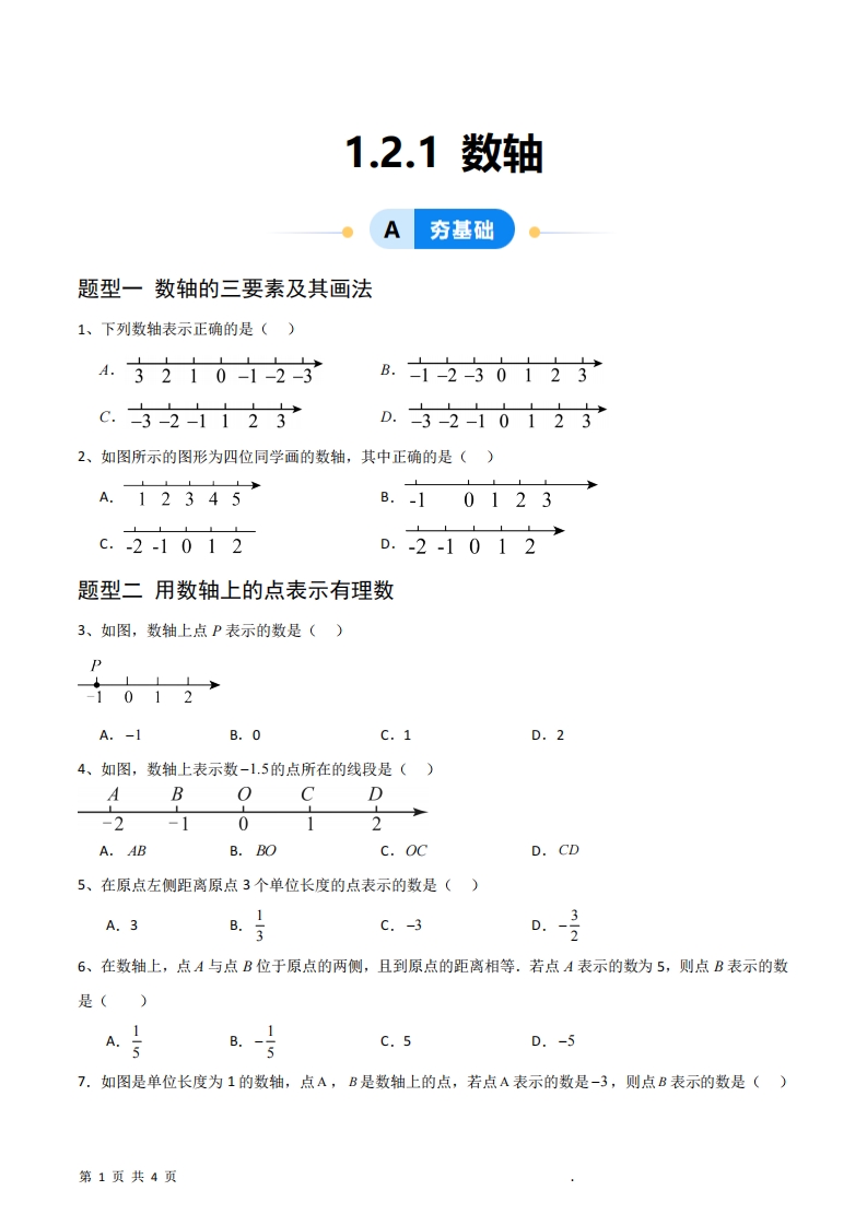 七年级(上)数学 数轴题型提分练(1)