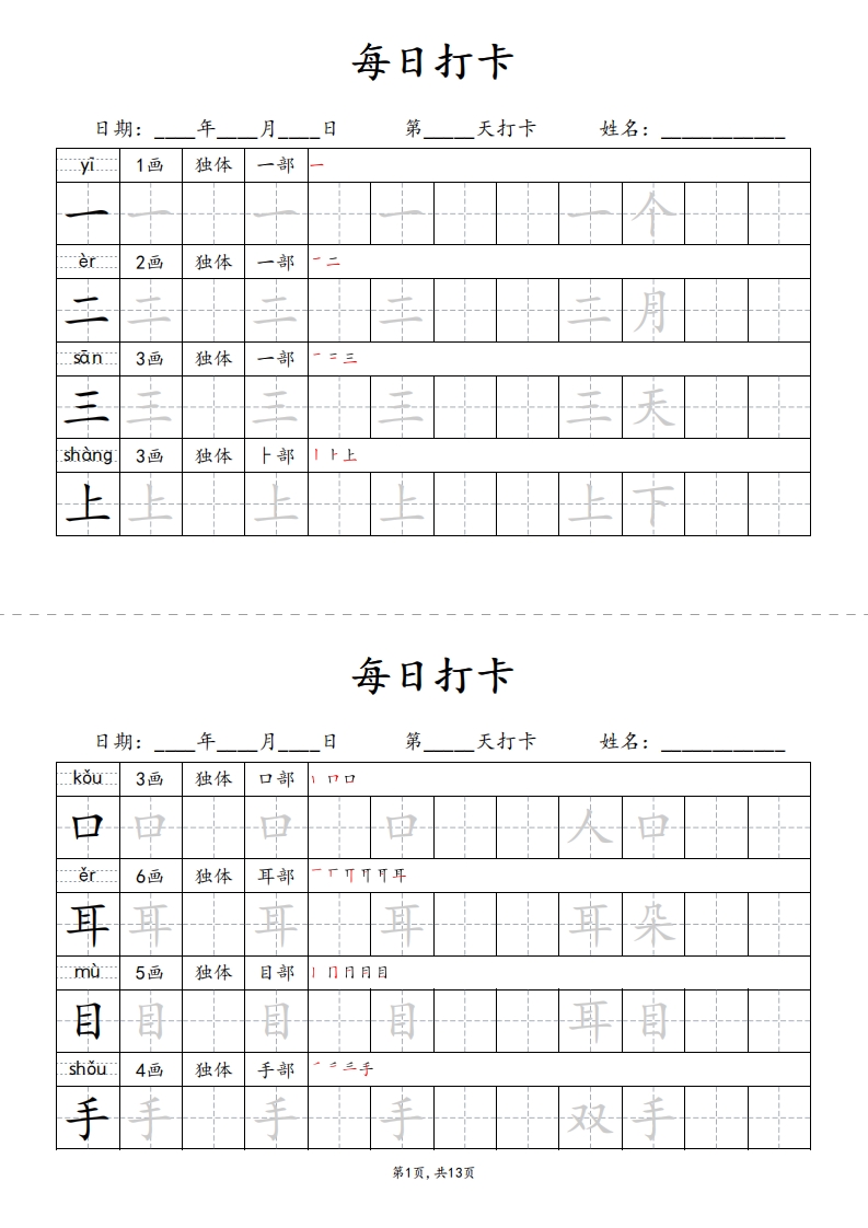 一上语文每日练字打卡
