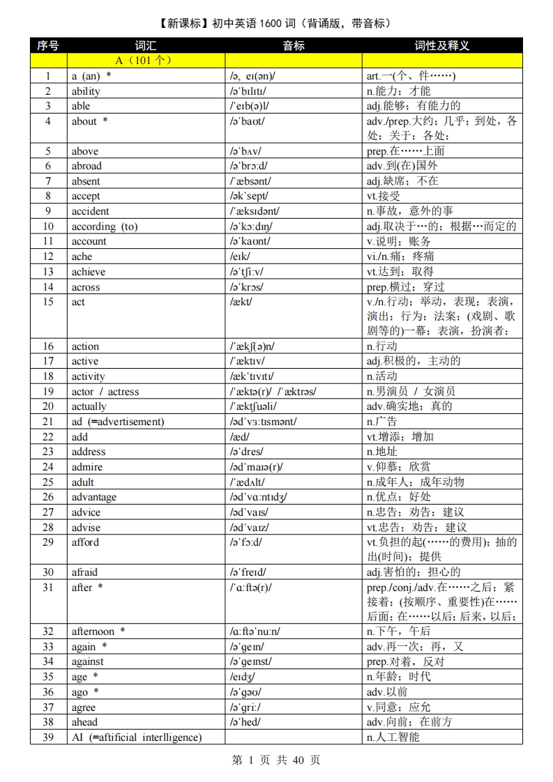 首页七年级数学上册七年级(上)英语 1600词(背诵版,带音标)
