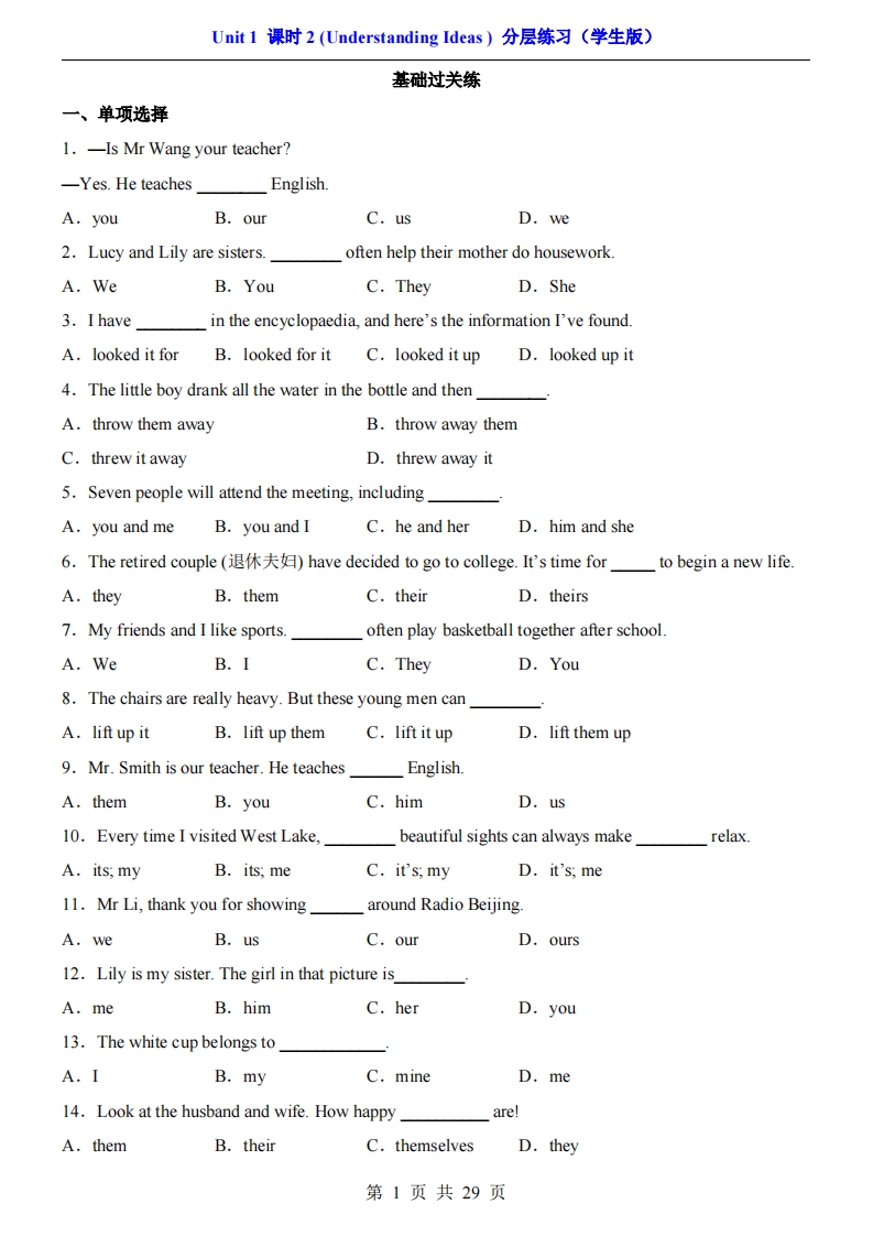 七年级(上)英语 Unit 1 课时2(分层练习)