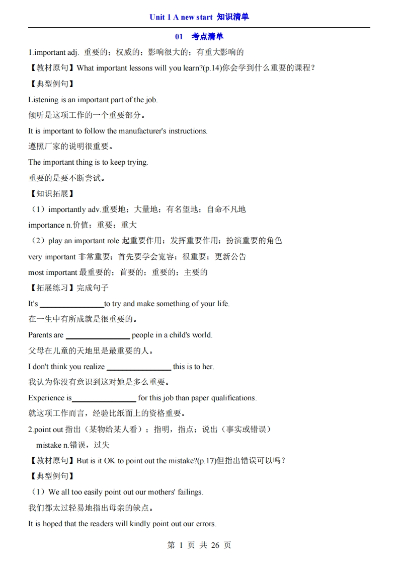 首页七年级英语上册七年级(上)英语 Unit 1(知识清单)