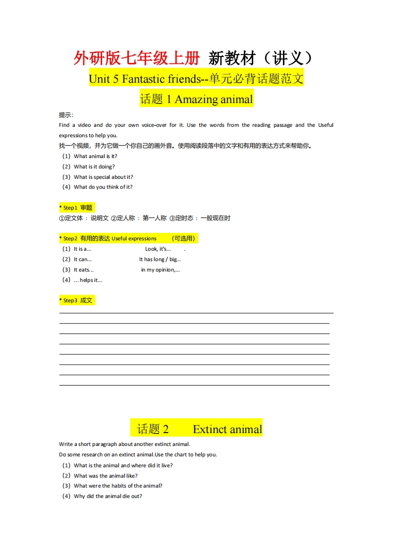 七年级(上)英语 Unit5单元必背话题范文(外研版)