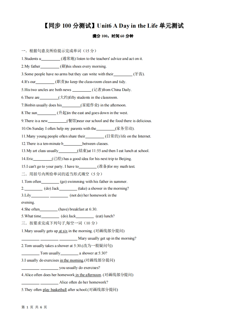 首页七年级英语上册七年级(上)英语 Unit6 单元测试