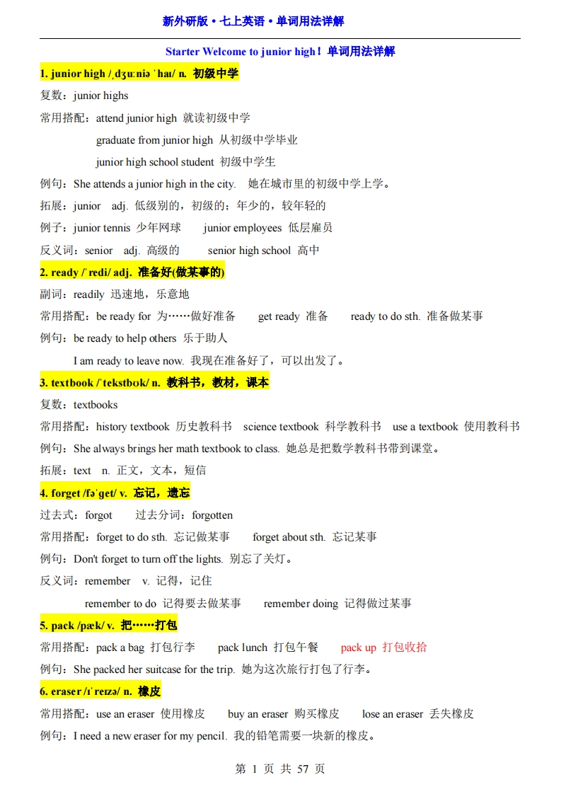 首页七年级英语上册七年级(上)英语 单词用法详解(外研版)