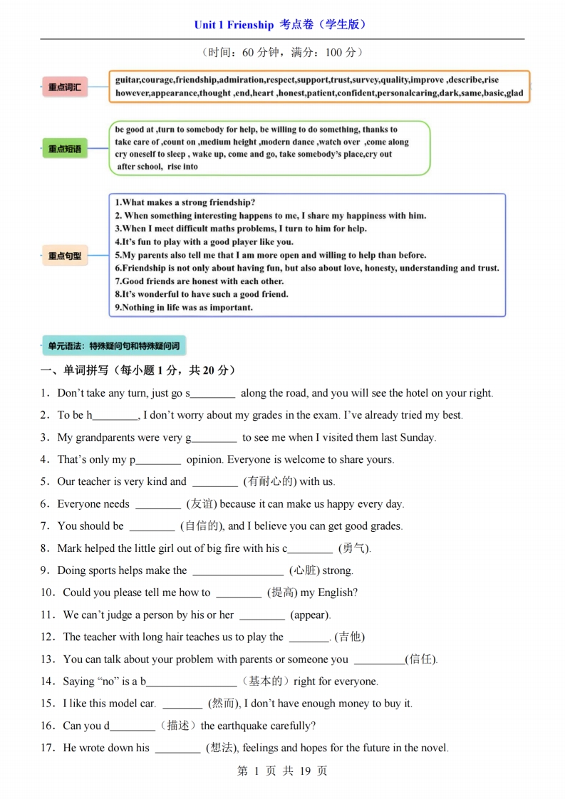 首页七年级英语上册七年级(上)英语Unit 1考点卷(沪教版)