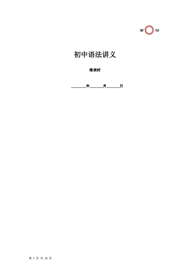 七年级(上)英语第14讲将来时(学生版不带答案)(冀教版)