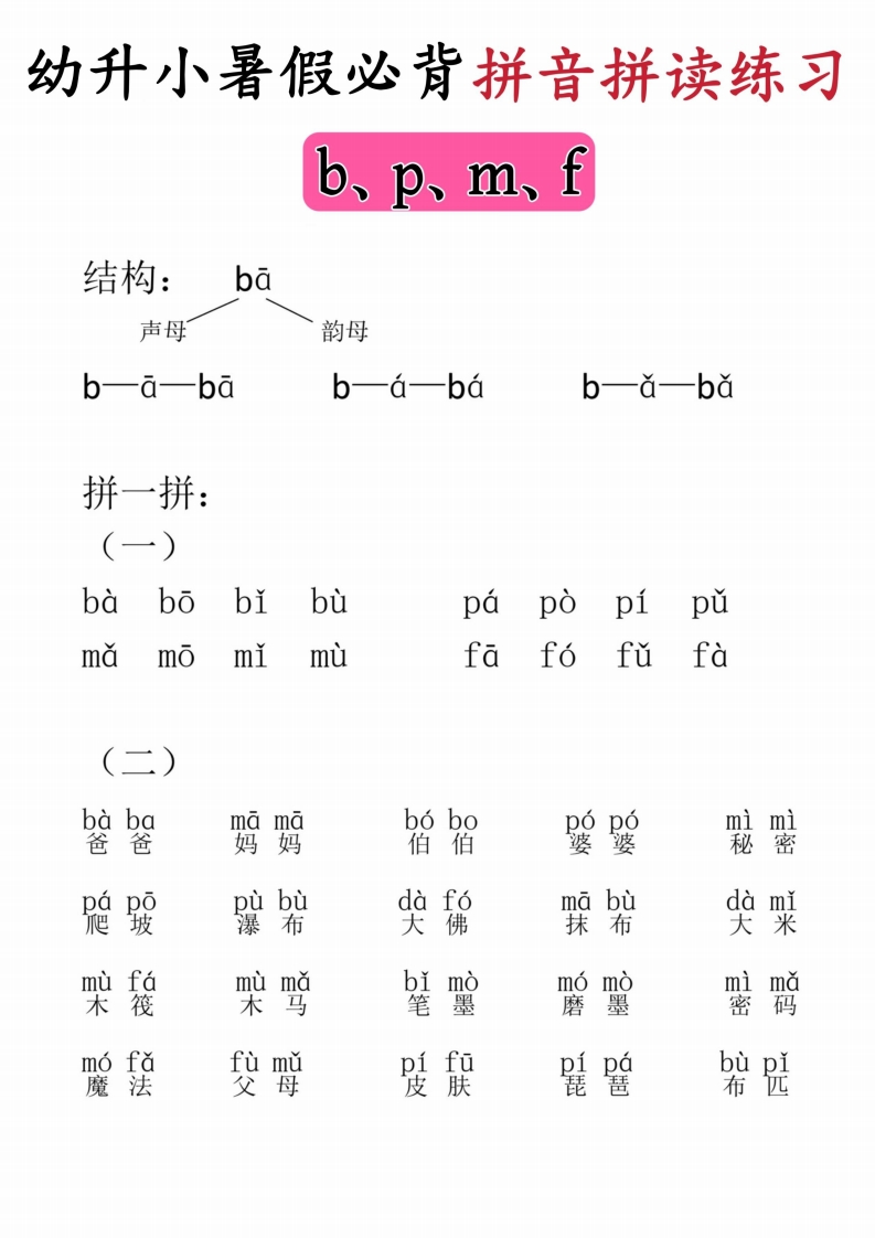幼小衔接拼音拼读练习