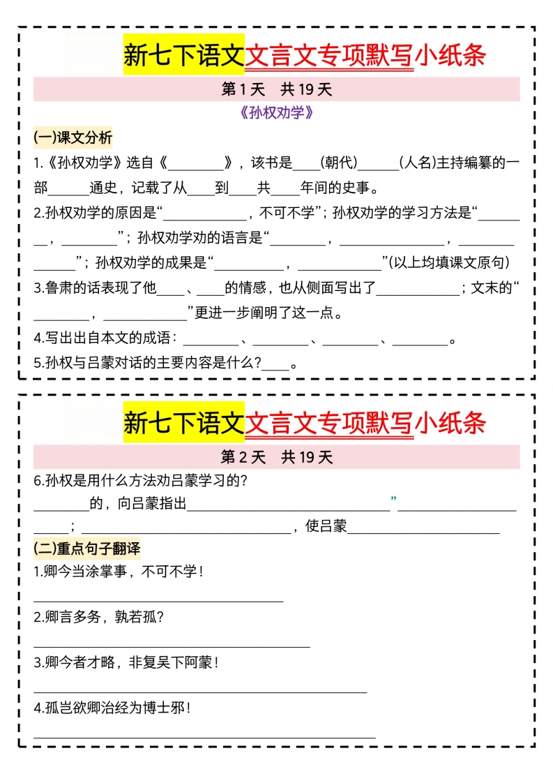 首页七年级语文下册新七下语文文言文专项默写小纸条