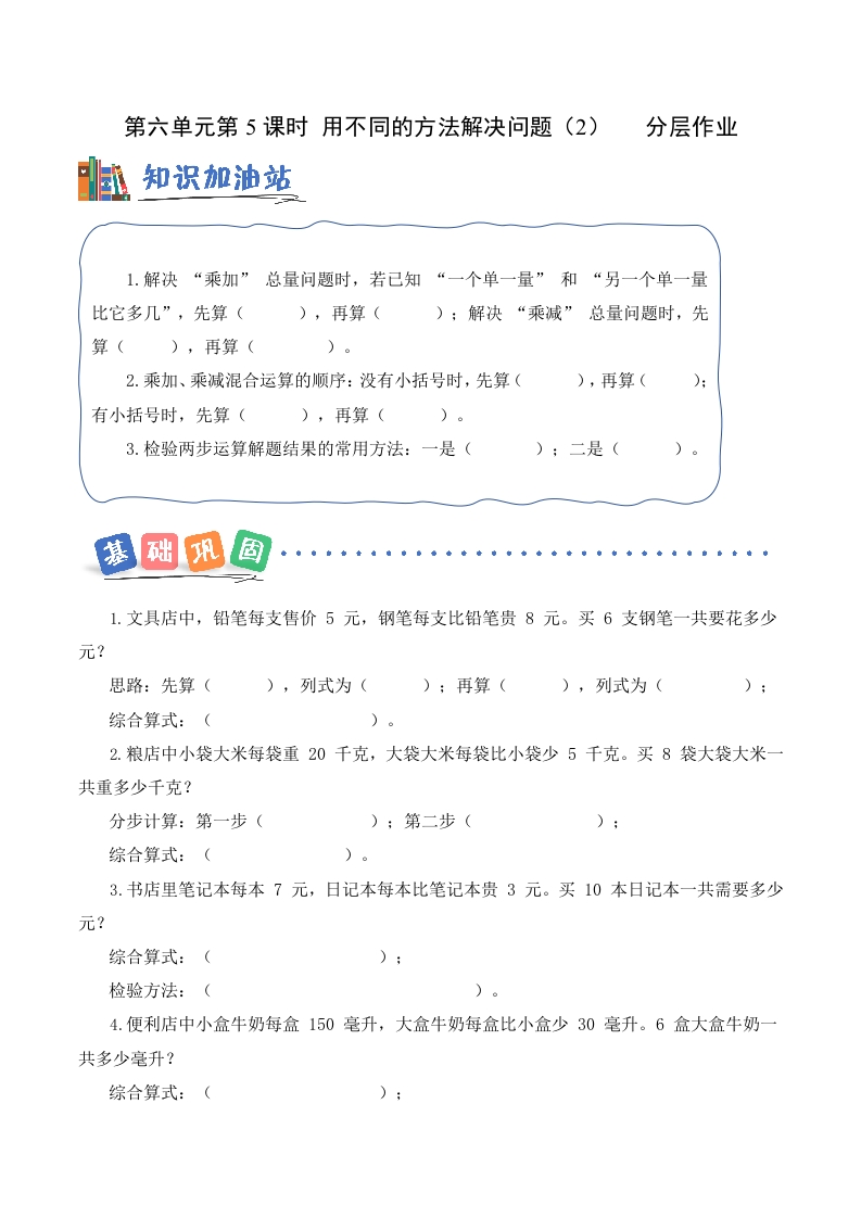 第六单元 第5课时 用不同的方法解决问题(2)(分层作业) (新教材)