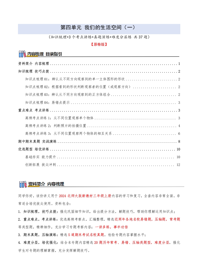 第四单元 我们的生活空间(一)(知识梳理+3个考点讲练+真题演练+难度分层练 共37题)原卷版