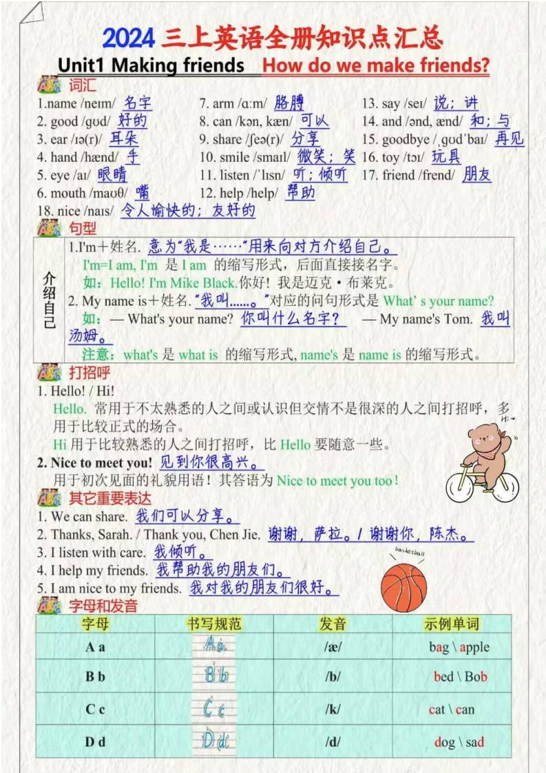 24秋三上英语全册知识点汇总
