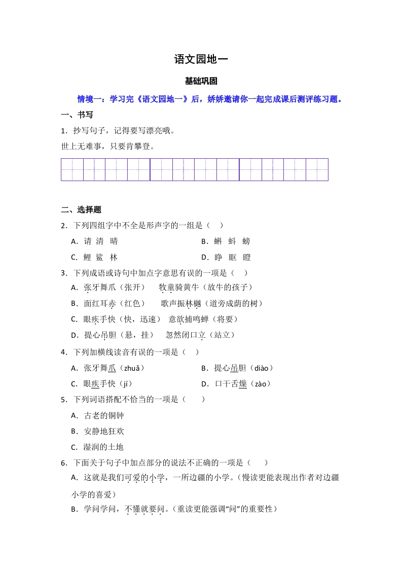 语文园地一 -语文三年级上册(统编版)