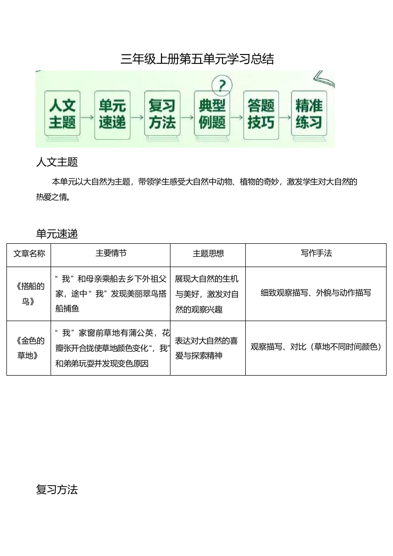 阅读复习 第五单元(期末专项训练)三年级语文上学期(统编版·新教材)