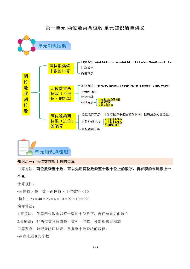 第一单元 两位数乘两位数(原卷版)