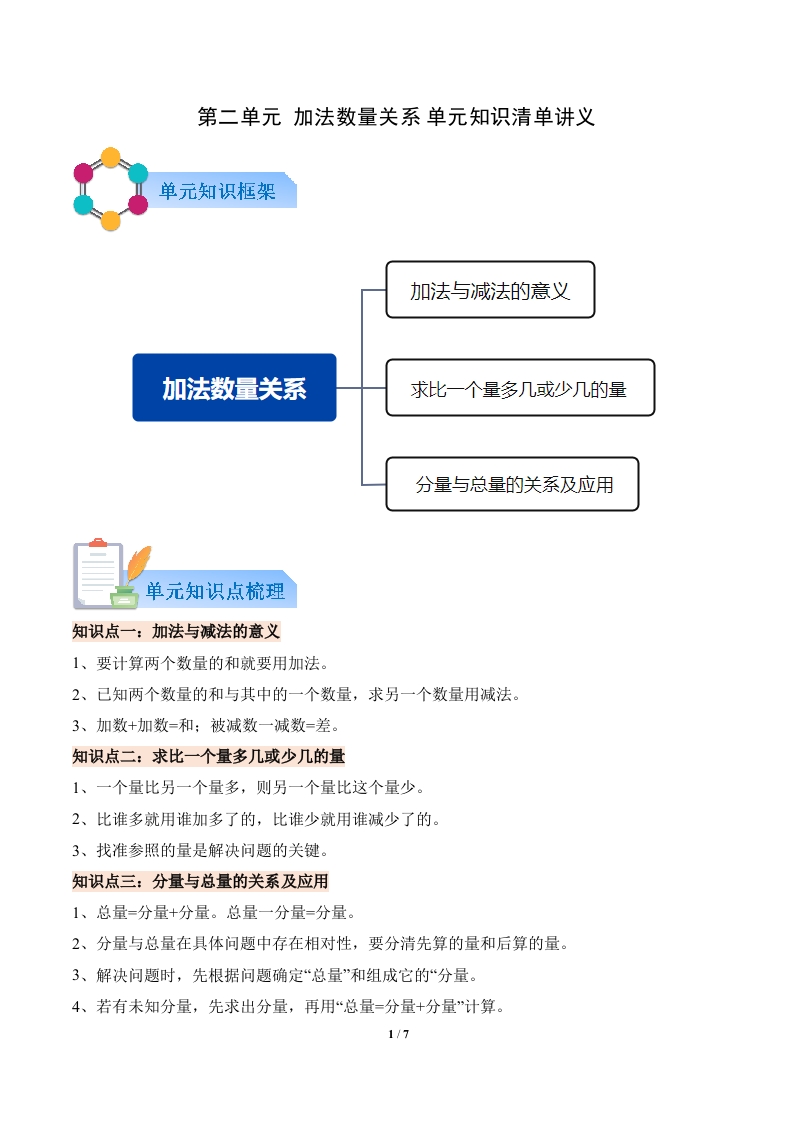 首页三年级数学下册第二单元 加法数量关系(知识清单)数学苏教版三年级下册(原卷版)